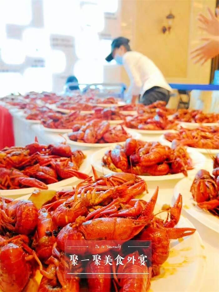 聚一聚承接某啤酒经销商客户答谢活动,精致茶歇冷餐,美味小龙虾,享受精品美食外宴。