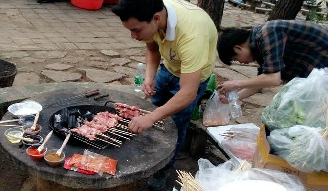 2014年4月19日南宁歇脚小栈餐饮管理公司全体员工于下午下班后在石门山森林公园举行烧烤活动